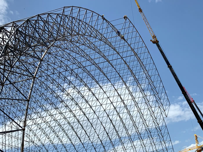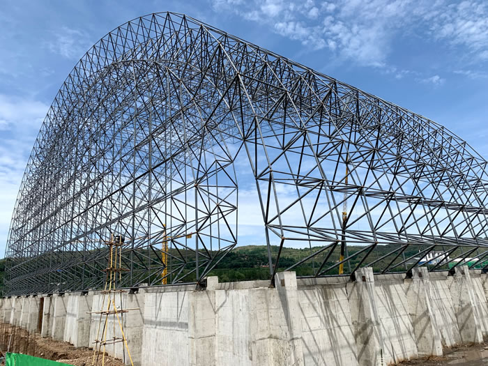 (2)网架加工前应对现场尺寸进行复测,确认无误后方可进行加工、安装;网架制作、运输、安装应遵守《空间网格结构技术规程》JGJ7-2010、《钢网架高碑店螺栓球节点》JG/T 10-2009、《钢网架高碑店螺栓球节点用高强度螺栓》 GB/T 16939-2016、《高碑店钢结构高碑店工程高碑店施工规范》 GB50755-2012、《高碑店钢结构高碑店工程施工质量验收标准》 GB50205-2020。
